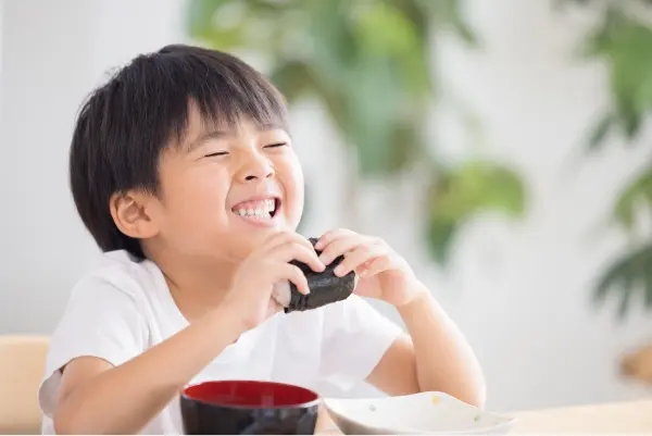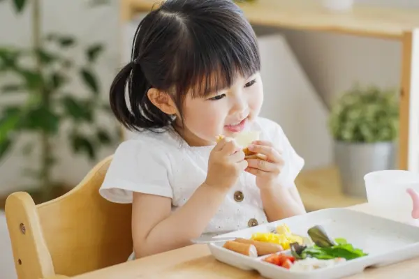 お子さまの味覚を育てることと同時に、口腔機能の発達も正しい歯並びや正しい呼吸につながるためとても重要です。「やみつきの味」になりやすい市販の菓子類やカップ麺、コンビニ食などの多くは、よく噛まなくてすみます。 「しっかり噛んで味わって飲み込む」といった一連の流れができないと、口腔機能の発達を妨げてしまいます。素材本来の味が楽しめる薄味の食事を心掛けましょう。